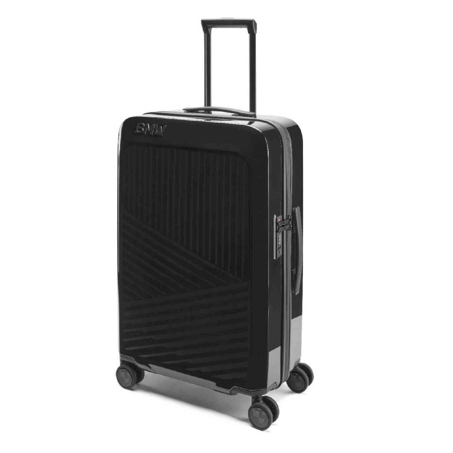 Wysokiej jakości czarna walizka BMW w stylu Trinity zdecydowanie przyciąga wzrok i zapewnia Tobie niepowtarzalny styl BMW podczas każdej podróży.
